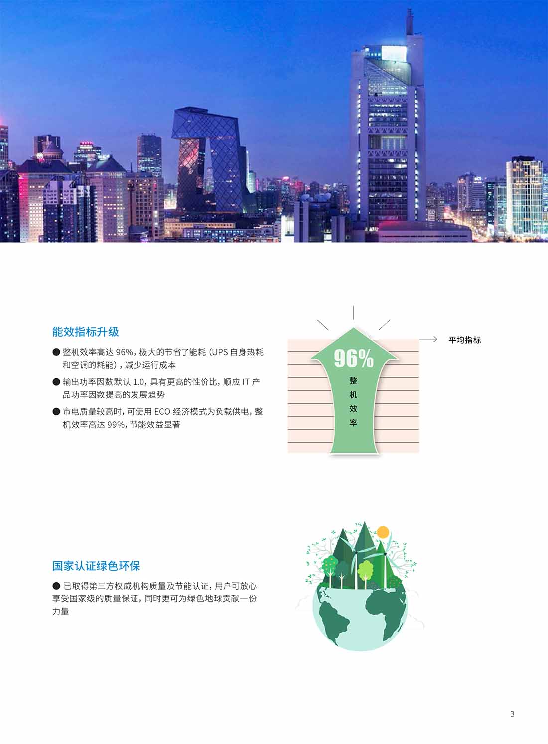 市電質(zhì)量較高時,可使用 ECO 經(jīng)濟模式為負(fù)載供電,整機效率高達(dá) 99%,節(jié)能效益顯著
