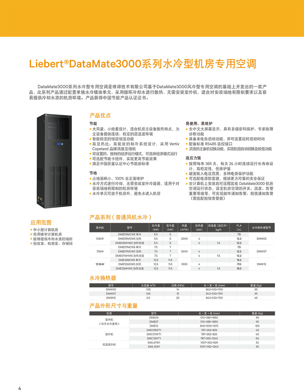 Vertiv Liebert DataMate3000 系列高能效型機房專用空調專門針對高能效需求的場所設計,比普通機房空調進一步節(jié)能10%以上。可應用于中小型計算機機房、電源室、精密控制室等場所,具有超高能效比、穩(wěn)定、長壽命運行的特點,可有效降低機房的總體擁有成本(TCO)。